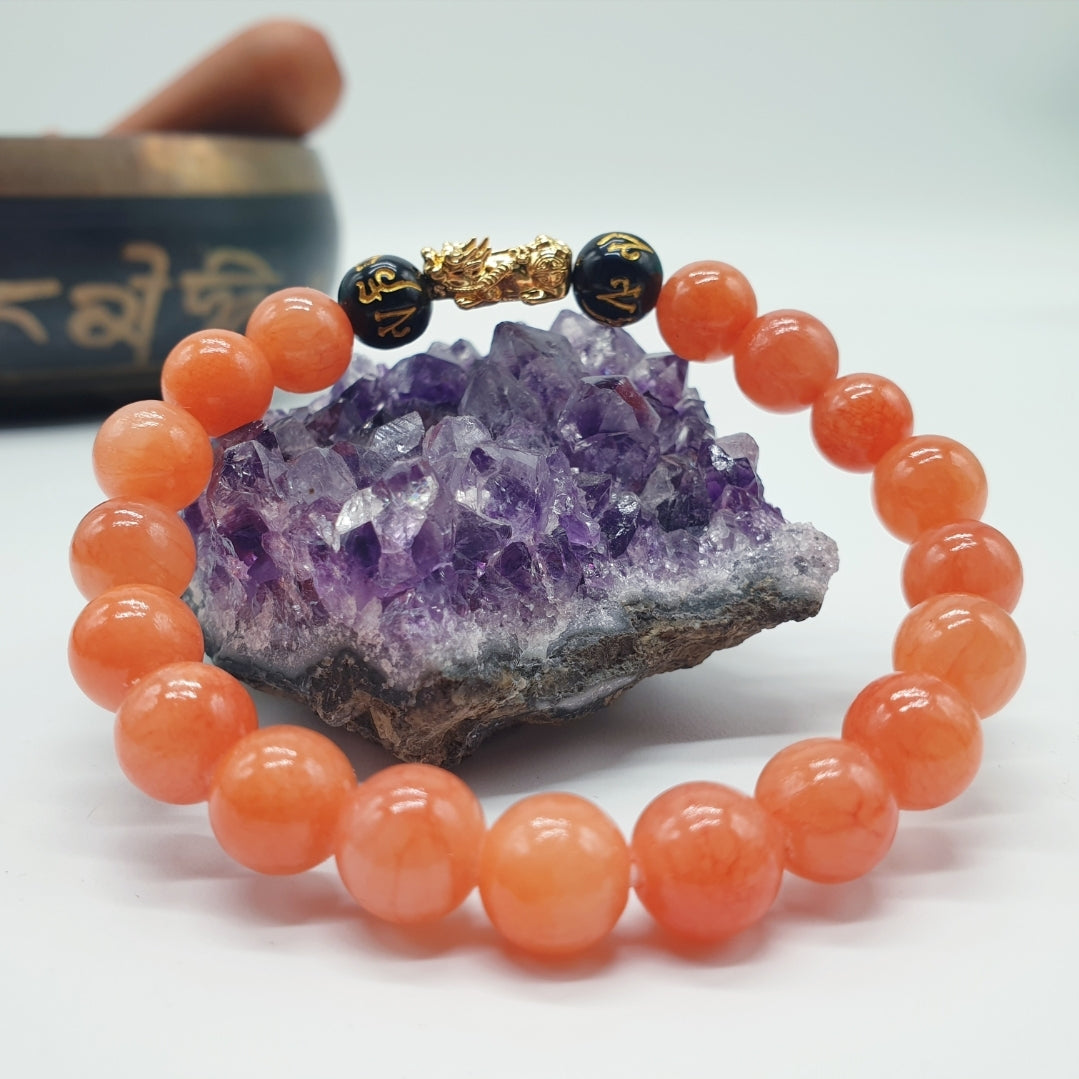 Apricot Crush Calcite is a stone of strength and stability, a strong stone of protection that shields you from negative energy. It is especially effective in protecting positive relationships. Apricot Crush Calcite is said to deepen the bond between parents and their children.