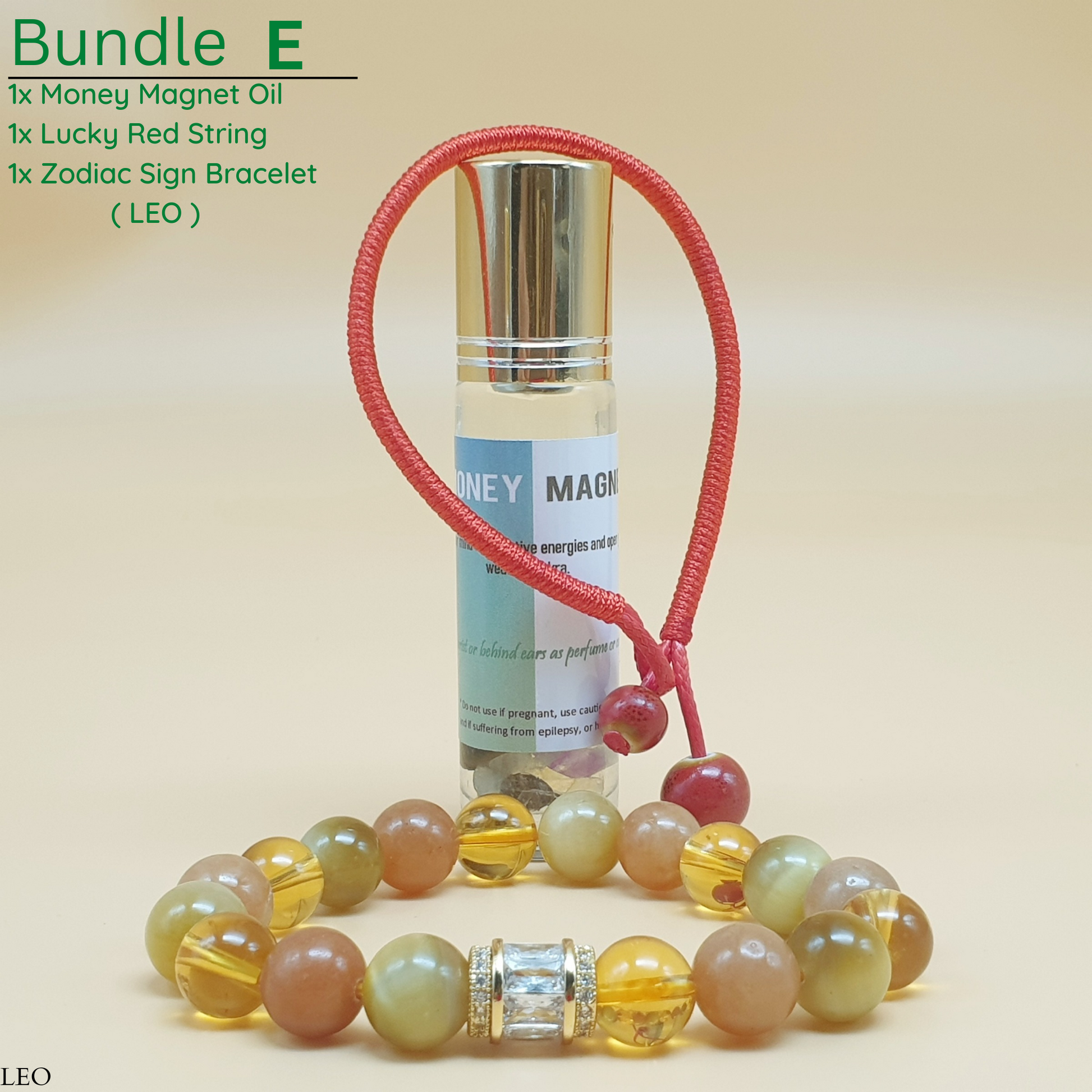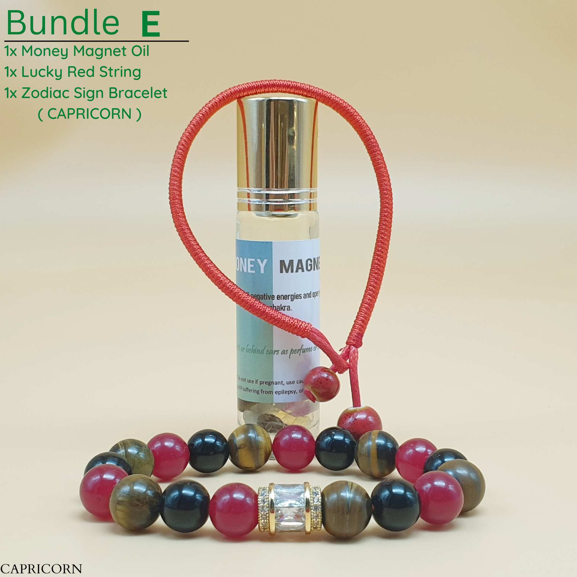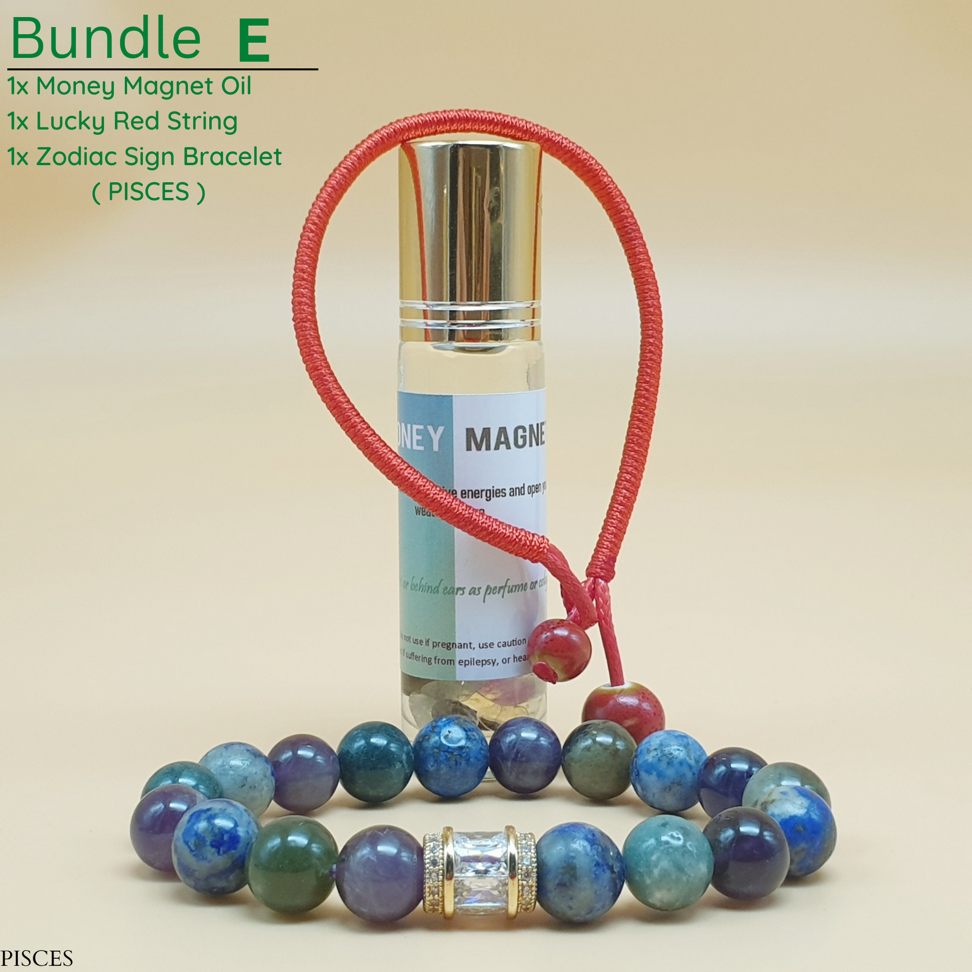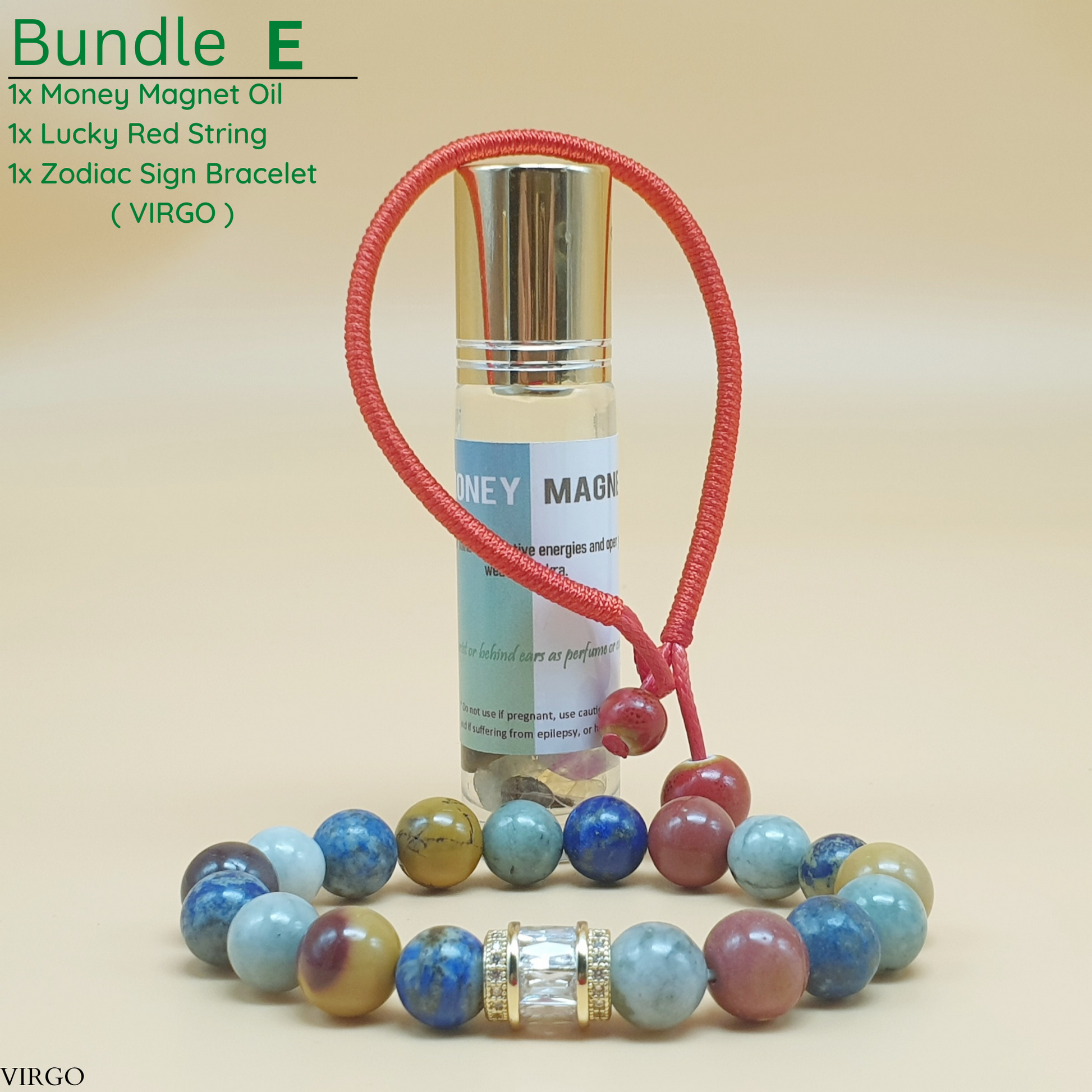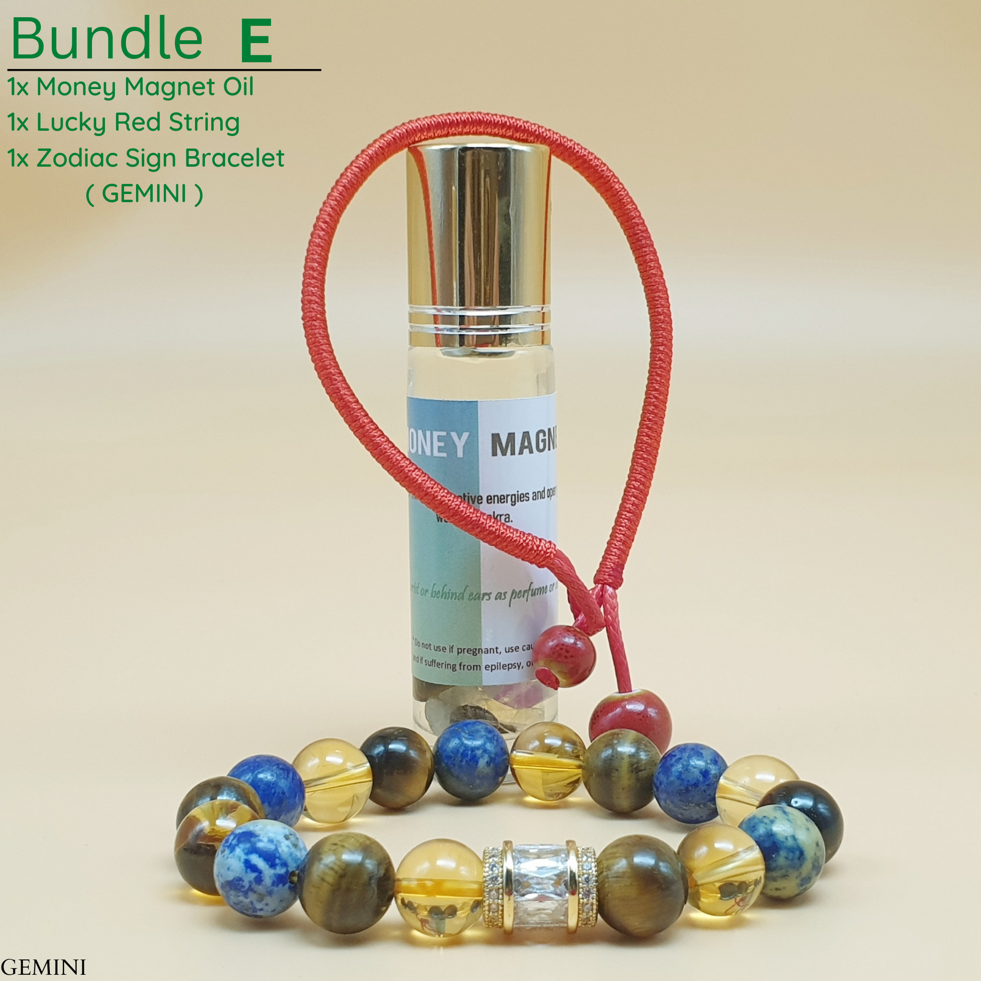 Bundle - E (Zodiac Sign Bracelet + Money Magnet Oil + Lucky Red String)