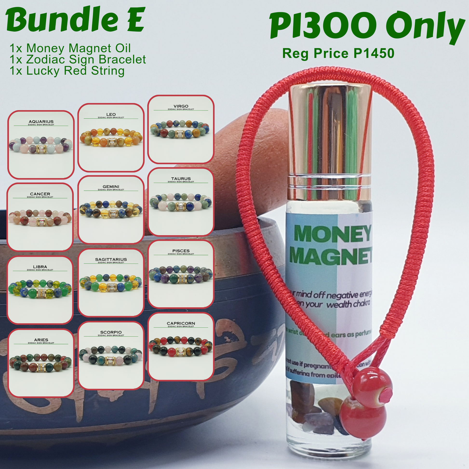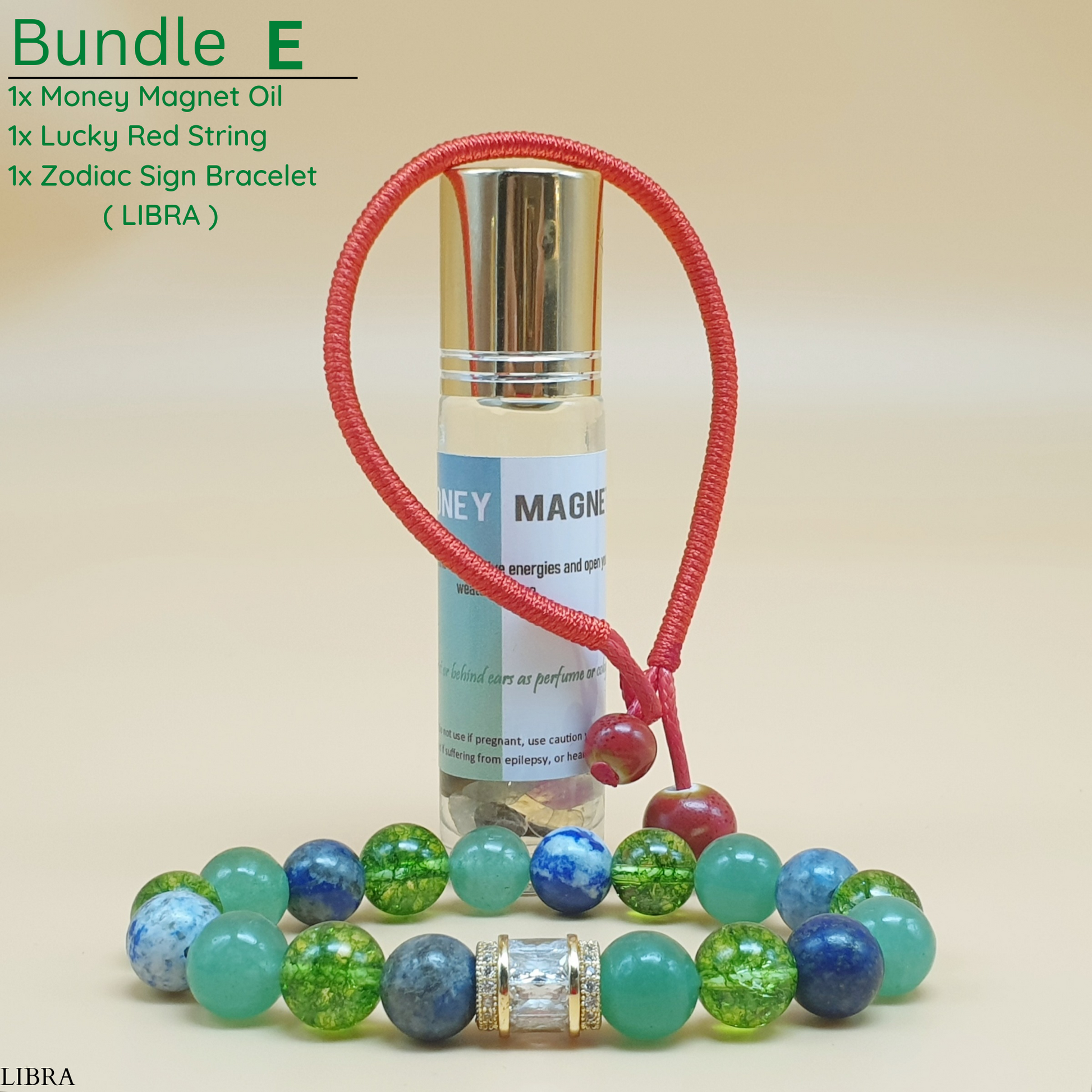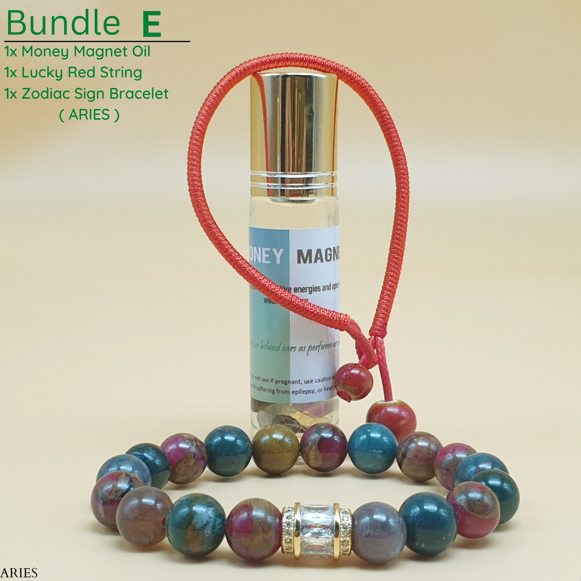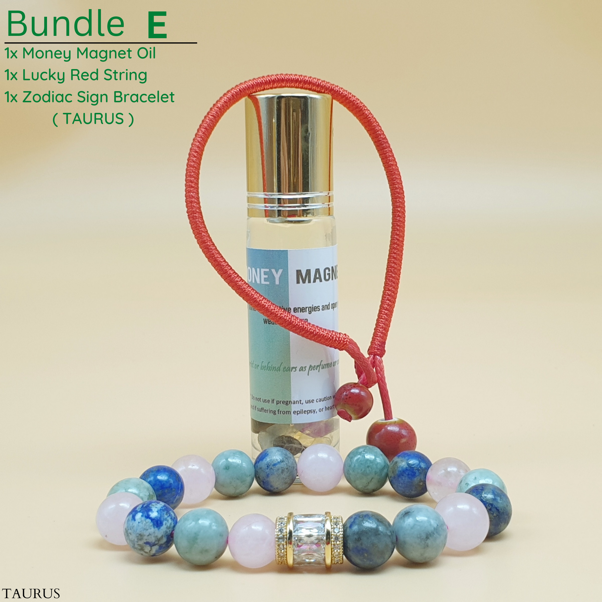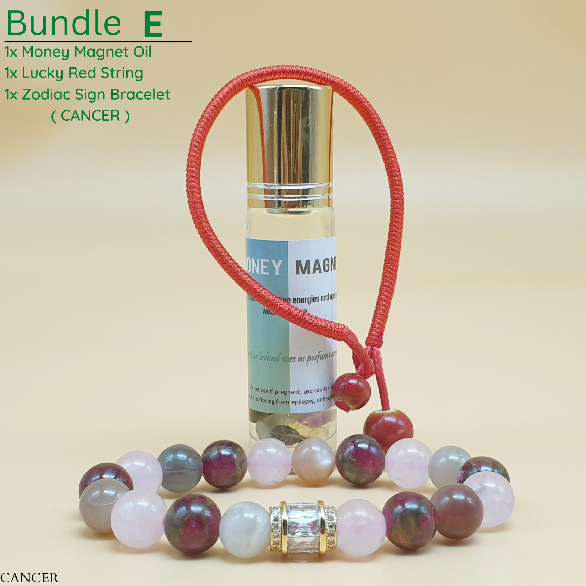 Bundle - E (Zodiac Sign Bracelet + Money Magnet Oil + Lucky Red String)